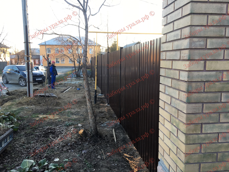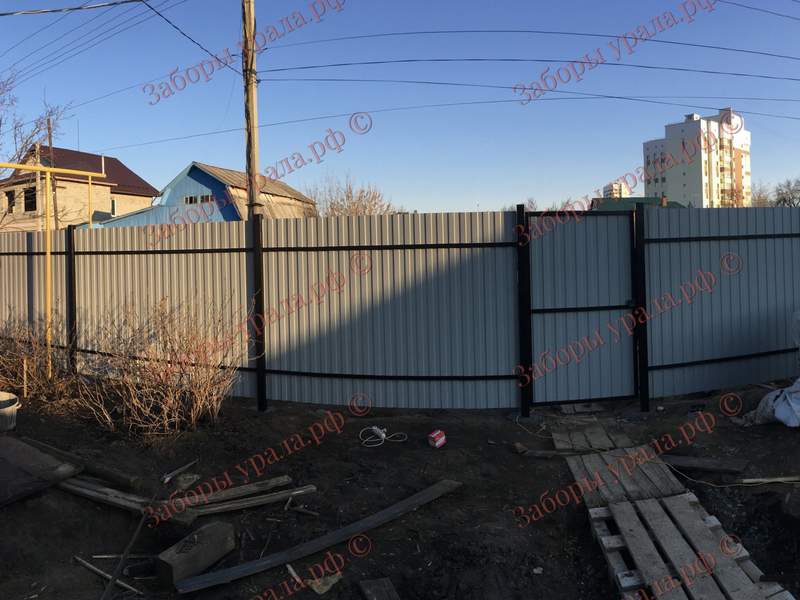 Верхняя Пышма - забор из профлиста с выделенными столбами 30м