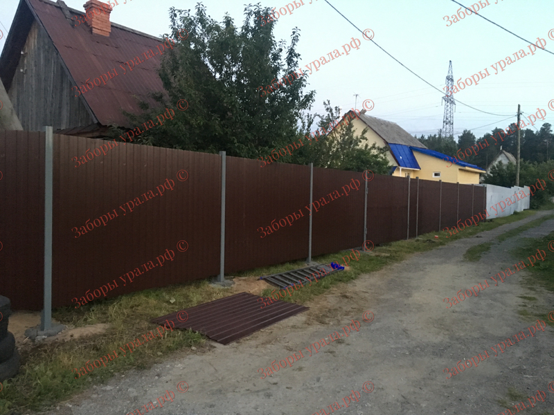Среднеуральск - 40м забор из профнастила с выделенными столбами
