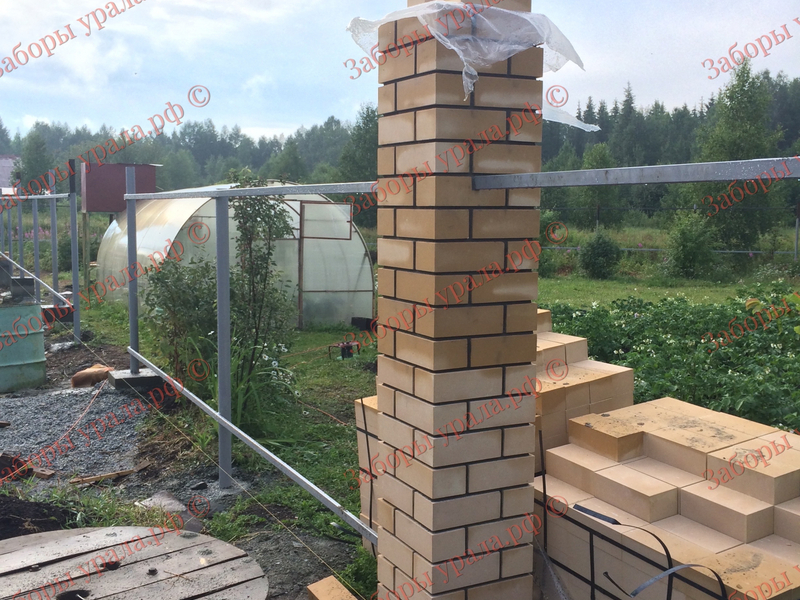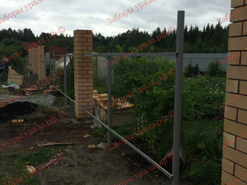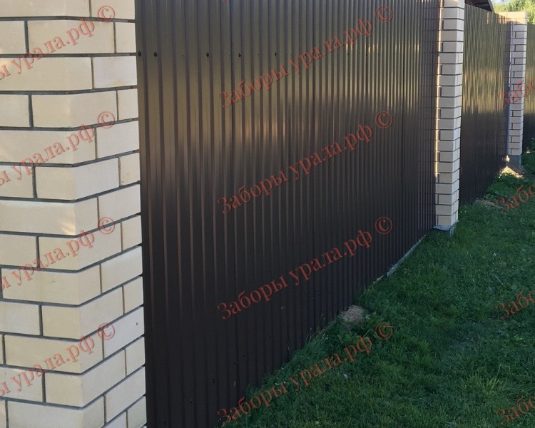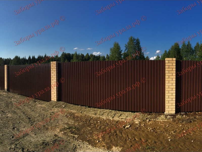 д. Ольховка (Невьянск) - забор из профлиста с кирпичными столбами 160м