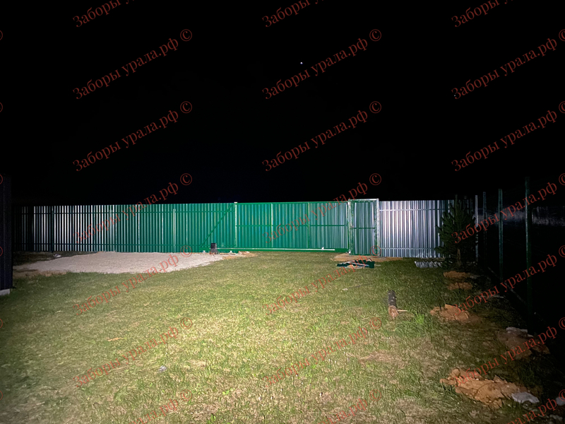 д. Гагарка - забор из профлиста 78м и 3В сетки 36м + Откатные ворота
