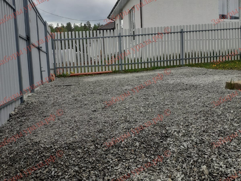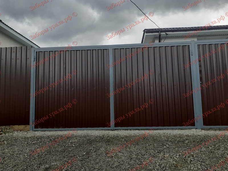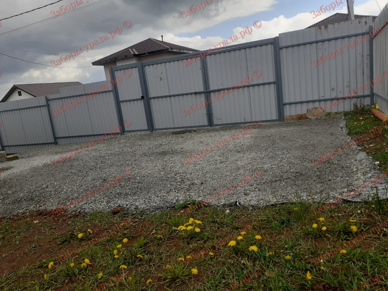 КП Чистые росы - забор из профнастила 44м и распашные ворота