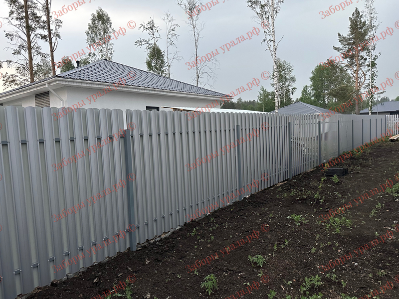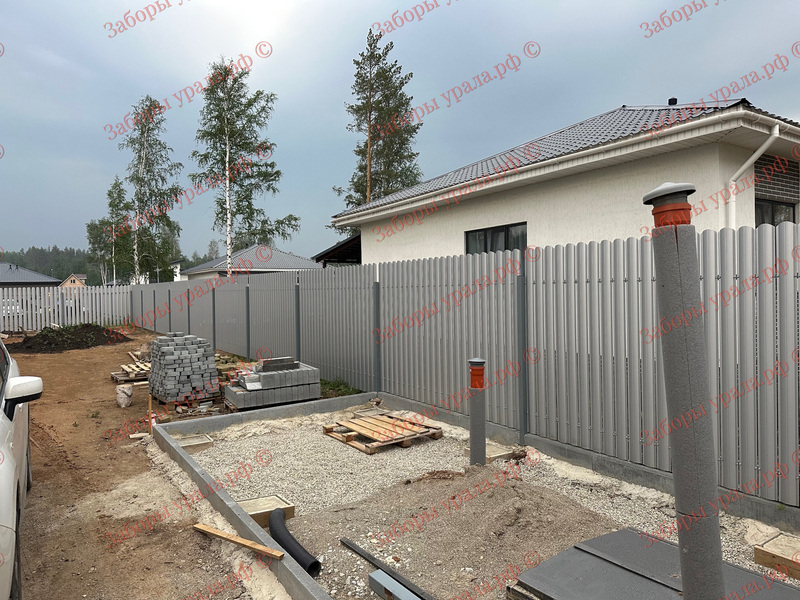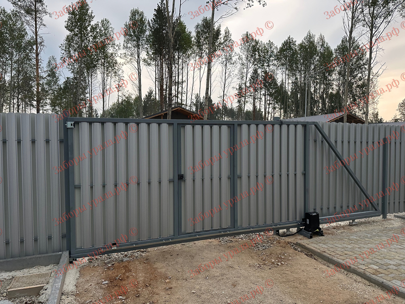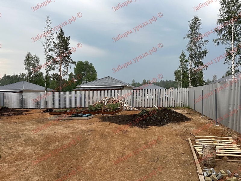 Проект включал в себя монтаж забора из металлического штакетника общей протяженностью 150 метров и установку откатных ворот.