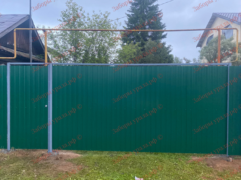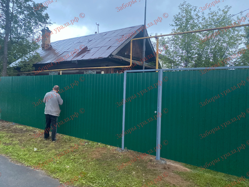 п. Кедровое - забор из профнастила 40м и распашные ворота эконом