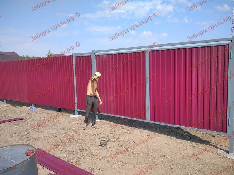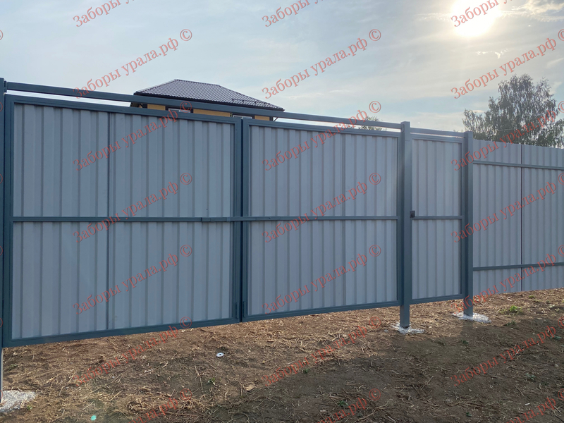п. Шабровский - забор из профнастила 126м и распашные ворота