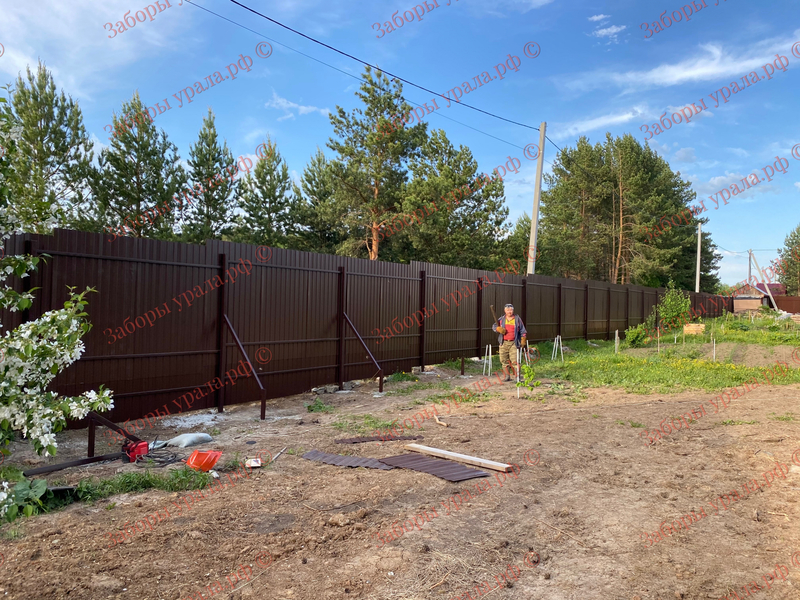 Снт "50 лет победы" (Белоярский) - 140м забор из профнастила, 3Д сетка и распашные ворота