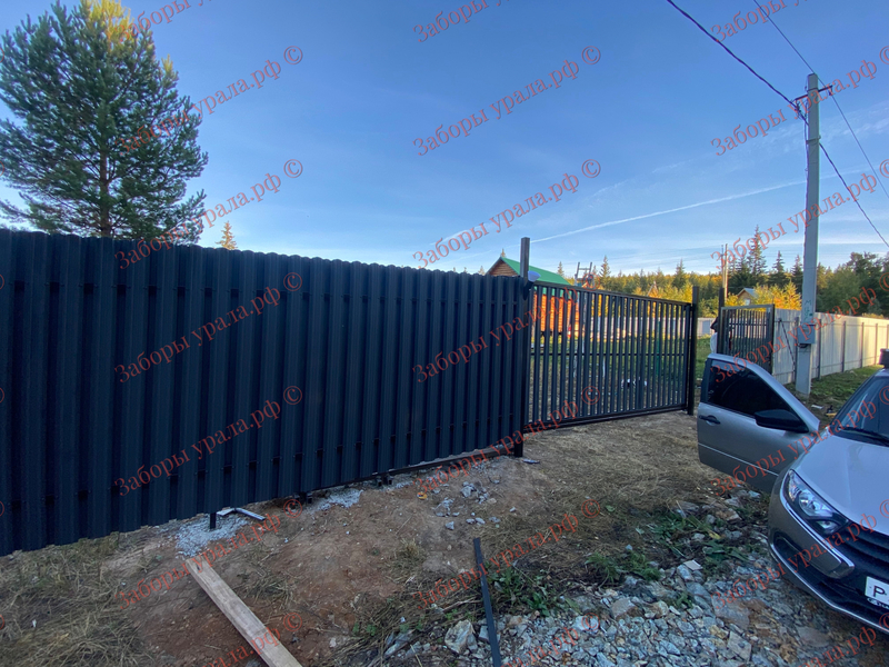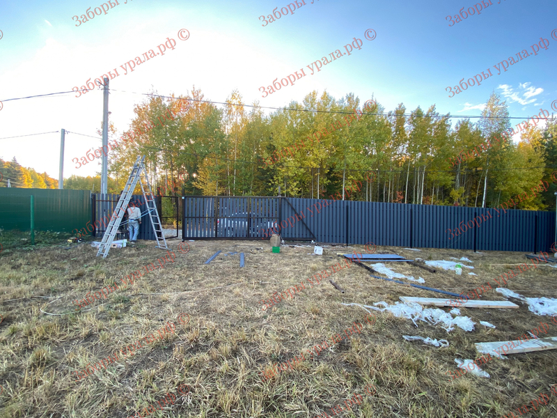 Снт "Садко" - забор из шахматного штакетника 30м и Откатные ворота