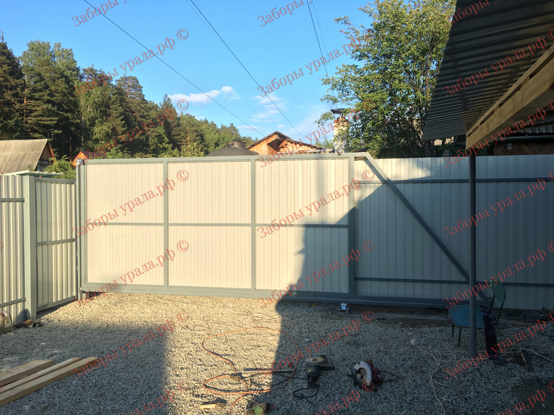 СТ "Юбилейный" - забор из профнастила 80м и Откатные ворота с калиткой