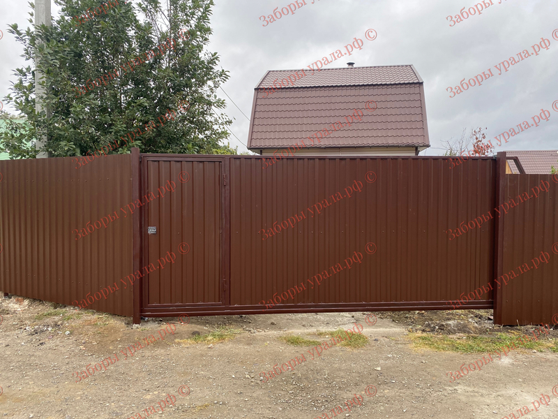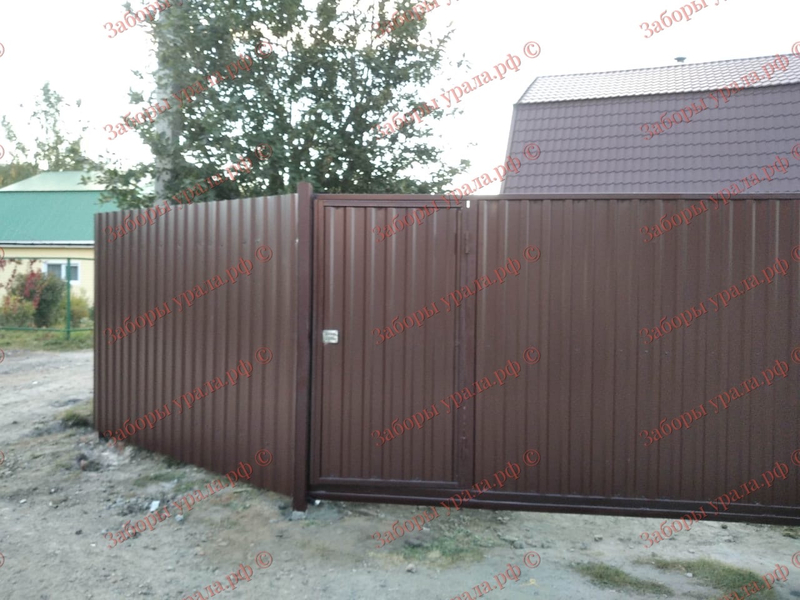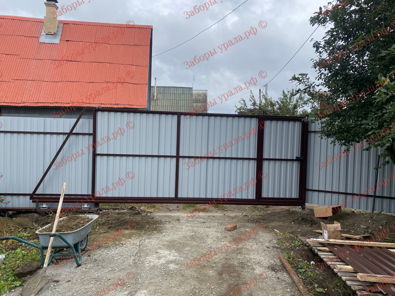 Наша компания выполнила проект по установке забора из профнастила и откатных ворот с калиткой в городе Верхняя Пышма.